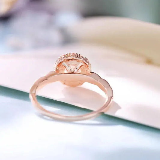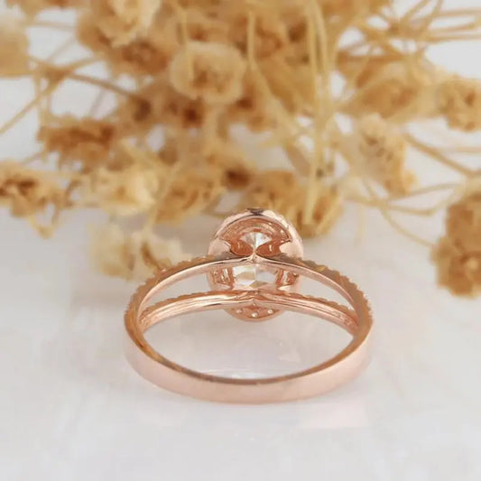 14k Rose Gold Moissanite Engagement Rings | Oval Moissanite Halo Ring