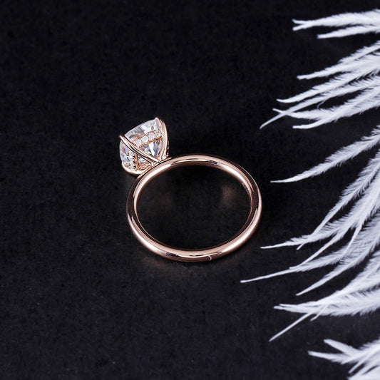 14k Rose Gold Hidden Halo Cushion Cut Moissanite Ring 1.5ct