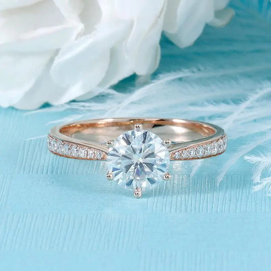 14k Rose Gold Moissanite Ring 1ct Center Stone | Best Engagement Ring For Small Hands