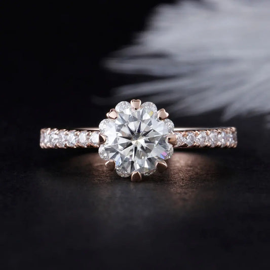14k Rose Gold Halo Ring | Moissanite Engagement Ring 1ct