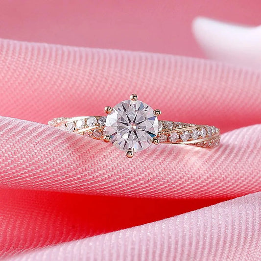 14k Rose Gold Moissanite Ring 1 Carat Center Stone Engagement Ring