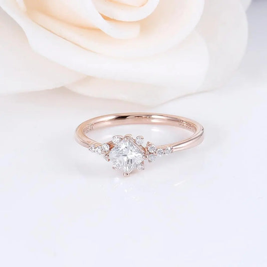 14k Rose Gold Princess Cut Moissanite Engagement Ring Gold Rose 0.4ct Center Stone