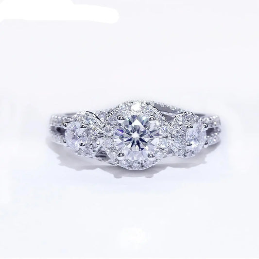 14k White Gold 3 Stone Moissanite Best Engagement Ring Cut 0.72ct Total
