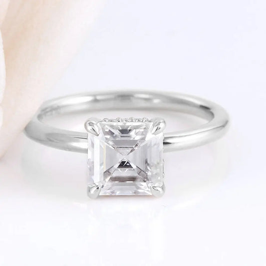 14k White Gold Asscher Cut Moissanite 1.5 Carat Ring Total