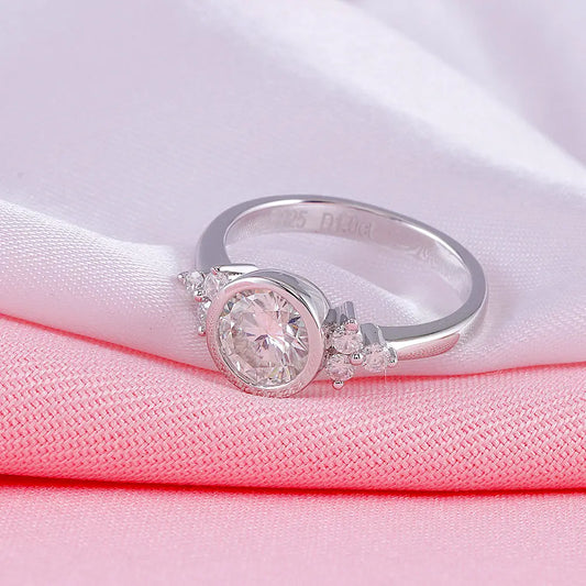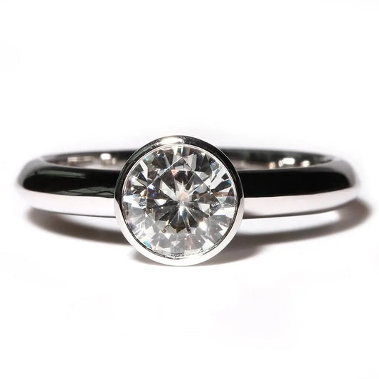 14k White Gold Bezel Set Solitaire Moissanite Ring 1ct