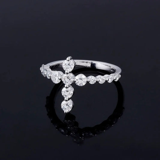 14k White Gold Cross Moissanite Classic Wedding Band Ring 0.81ct Total