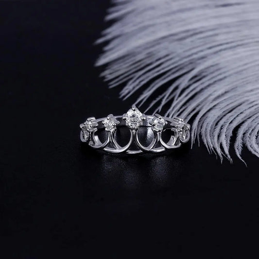 14k White Gold Crown Moissanite Wedding Band Rings for Women 0.16ct Total