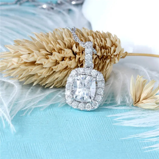 14k White Gold Cushion Cut Moissanite Necklace / Pendant 1.64ct Total