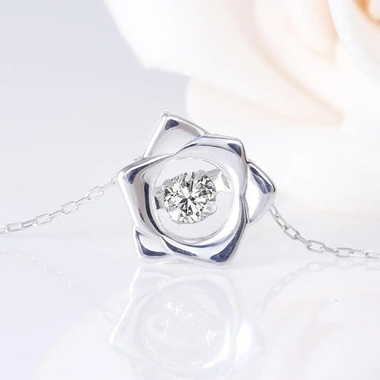 14k White Gold Dancing / Floating Necklace / Pendant Moissanite 1ct Center Stone