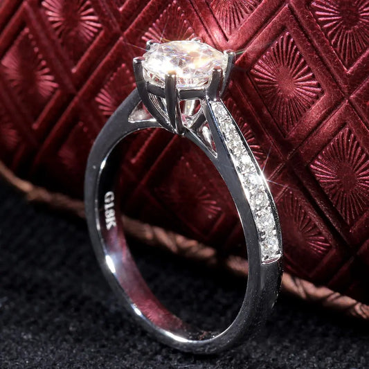 14k White Gold Moissanite Ring 1ct Center Stone - Best Engagement Ring Stone