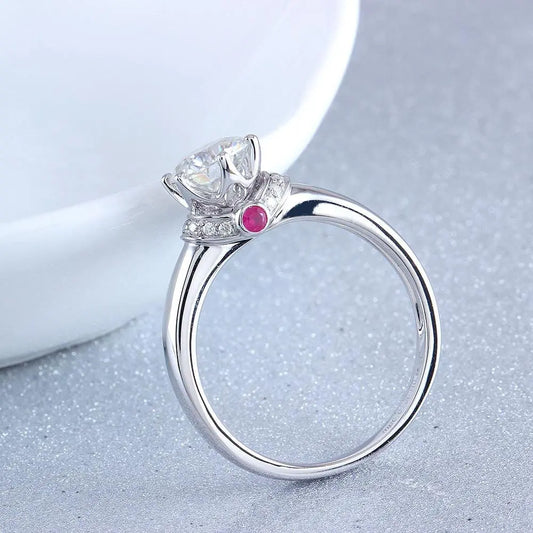 14k White Gold Moissanite Ruby Necklace 1ct Center Stone (Ruby Accent)
