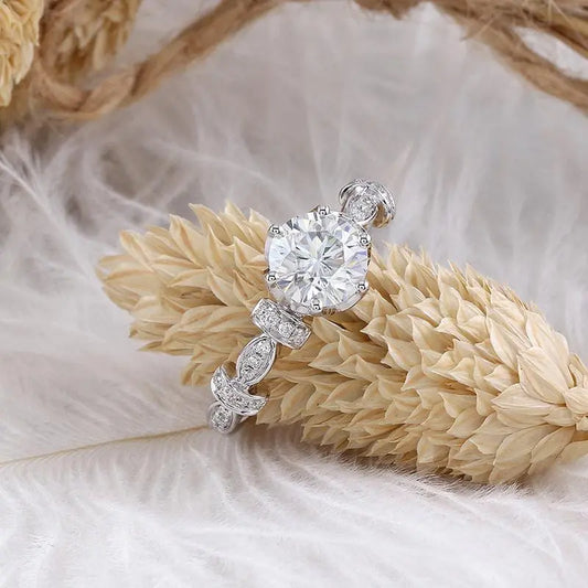 14k White Gold Moissanite Ring 1ct Center Stone - Unique Engagement Rings Near Me