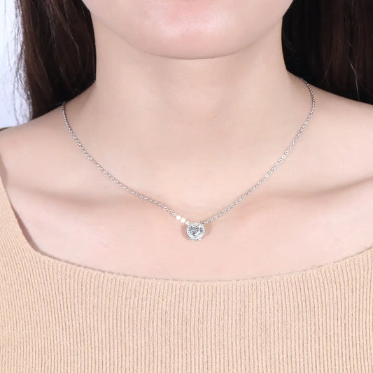 14k White Gold Moissanite Valentine's Day Necklace for Her / Pendant 1.6ct Center Stone