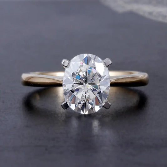 14k Yellow & White Gold Solitaire 2 Carat Oval Moissanite Ring