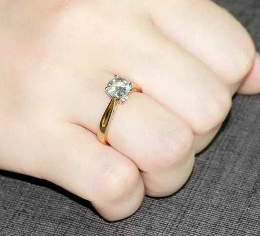 14k White & Yellow Gold Solitaire Moissanite Engagement Ring With Center Stone 2ct