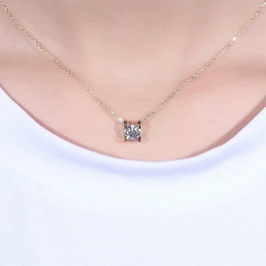 14k Yellow Gold Moissanite Necklace 1ct - Beautiful Simple Necklace