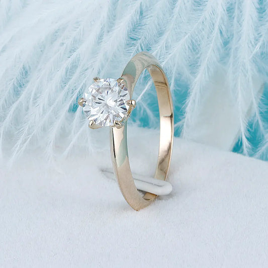 14k White & Yellow Gold Solitaire Moissanite Engagement Ring With Center Stone 2ct