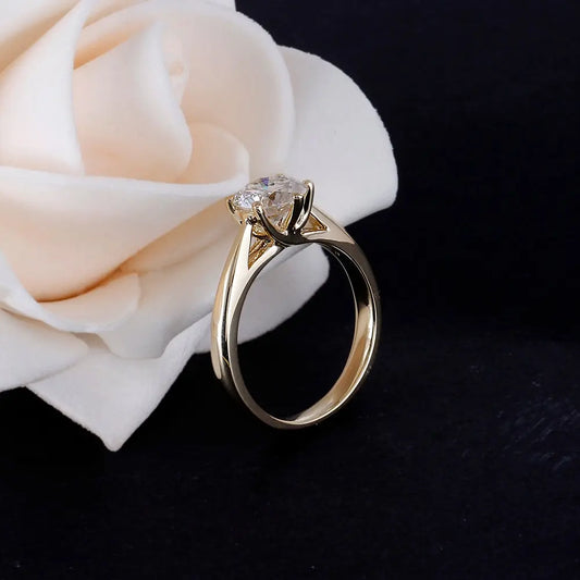 14k Yellow Gold Solitaire Moissanite Ring 2ct / Best Engagement Ring Shape