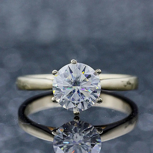 14k White & Yellow Gold Solitaire Moissanite Engagement Ring With Center Stone 2ct