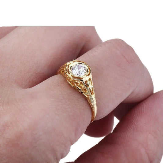 14k Yellow Gold Vintage / Unique Moissanite Women Engagement Rings 0.3ct Total