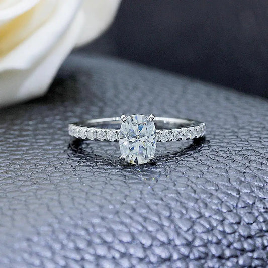 10k White Gold Oval Cut Moissanite Ring 1ct Center Stone | Women Wedding Ring Sets