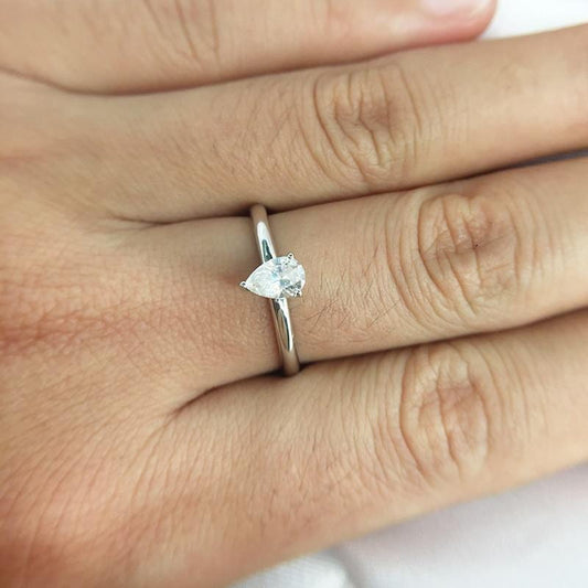 Platinum Plated Silver Pear Cut Solitaire Moissanite Ring .5ct