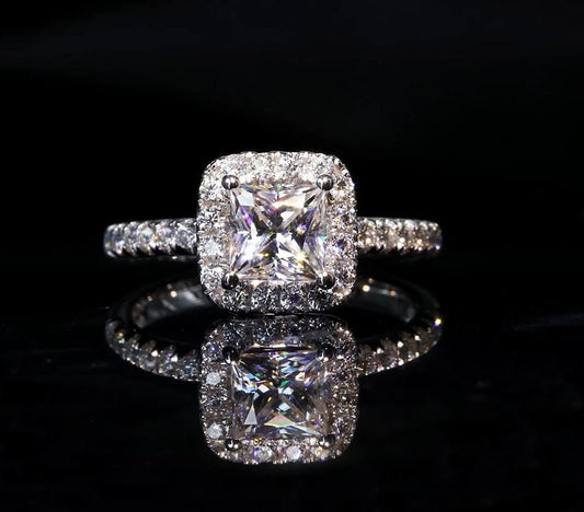 Platinum Plated Silver Princess Cut Halo Moissanite Ring 1ct Total