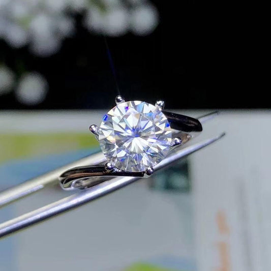 Platinum Plated Silver Solitaire Women Moissanite Ring 2ct