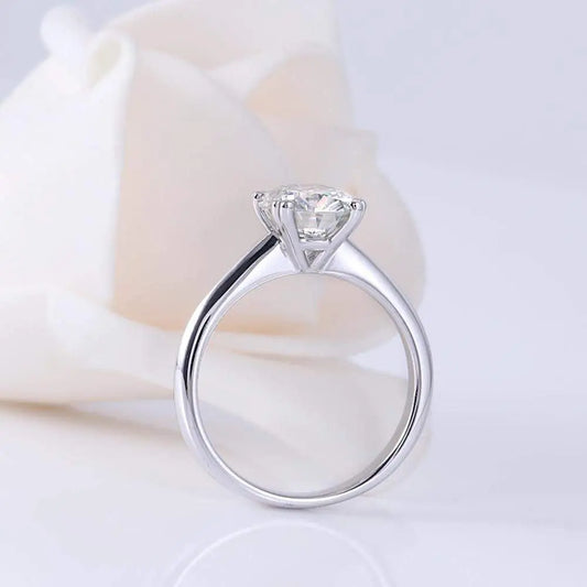 Platinum Plated Silver Solitaire 1 Carat Moissanite Ring