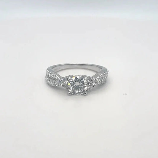 PLATINUM PLATED SILVER THROUGH THICK AND THIN RING 1CT MOISSANITE W/ TWISTED BAND AND POETRY CARD