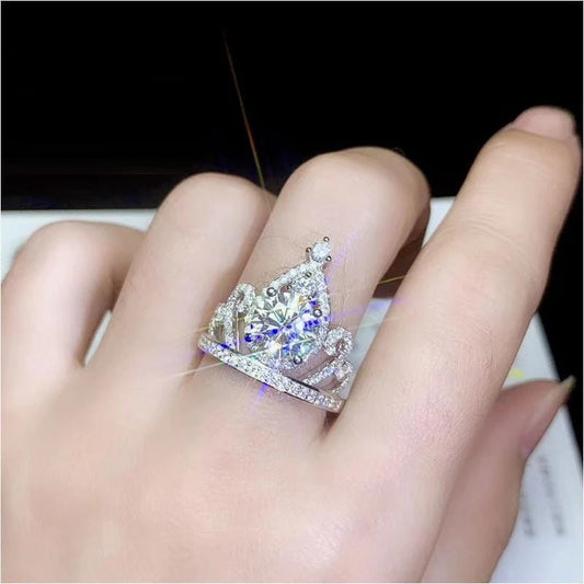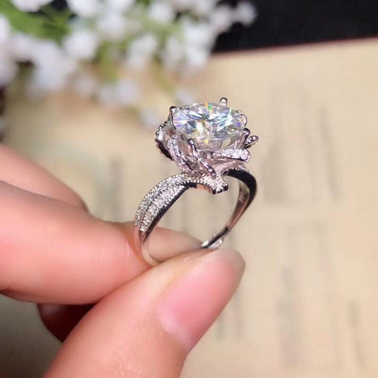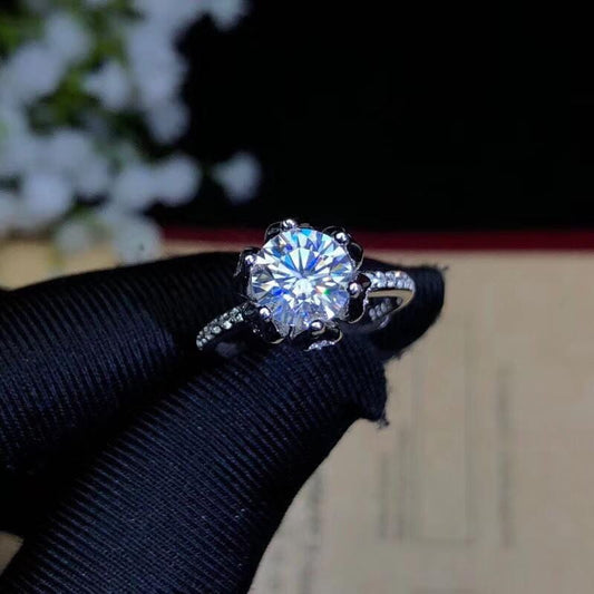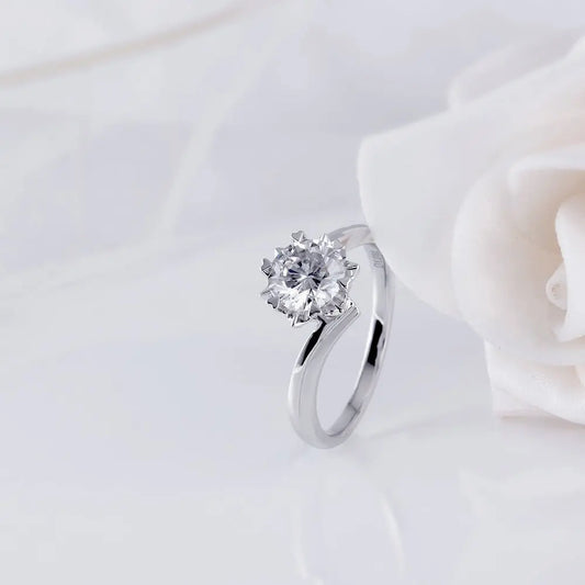 Platinum Plated Silver Unique Moissanite Ring 1ct or 0.5ct