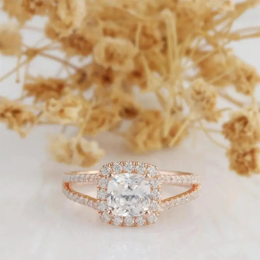 Rose Gold Halo Moissanite Engagement Ring 1ct