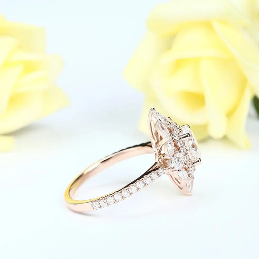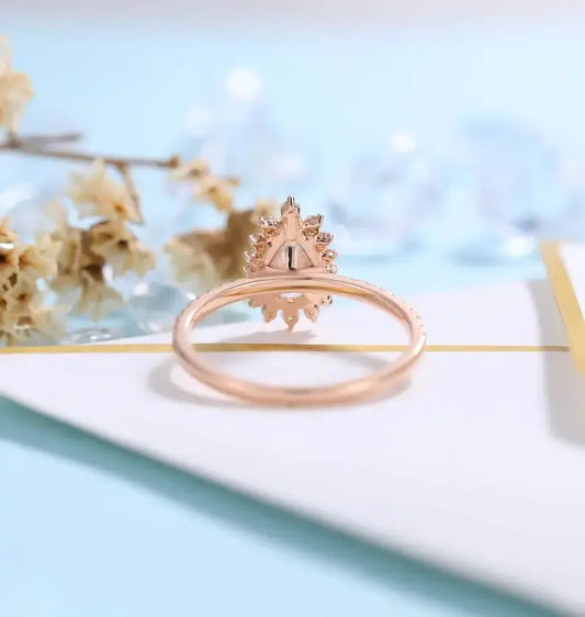 Rose Gold Pear Shaped Moissanite Halo Engagement Ring 1ct
