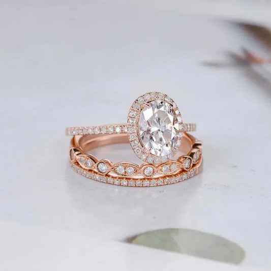 Rose Gold Halo Moissanite Oval Cut Engagement Rings 1.5ct