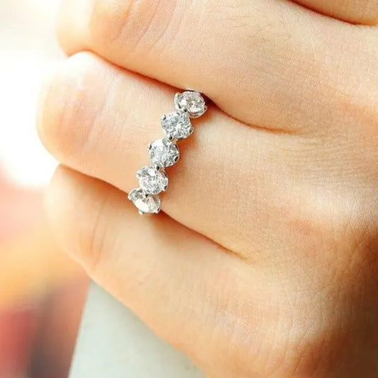 Silver 5 Stone Moissanite Golden Anniversary Rings 1.25ct