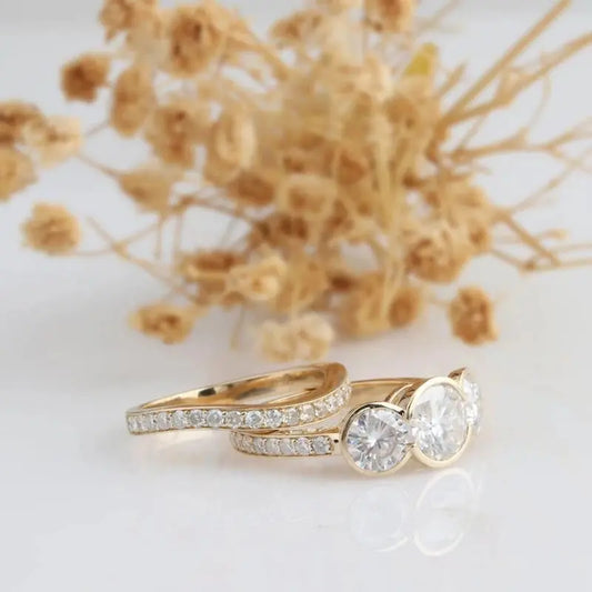 Silver or Gold Wedding Bridal Set With Bezel Set Side Stone 2ct