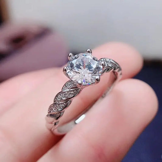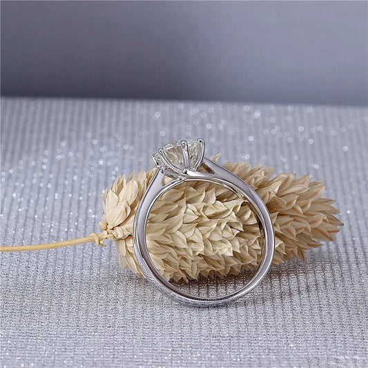 Stunning Engagement Ring - White Gold Plated Silver Moissanite Ring 1ct Center Stone