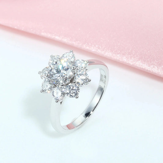 Silver or Gold Sunflower Halo Moissanite Rings | Engagement Ring 1ct