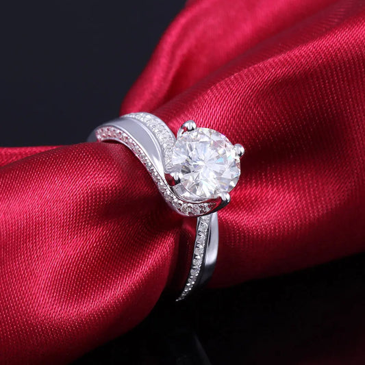 Solitaire Moissanite Stylish Engagement Ring Platinum Plated Silver 1.5 Carat Center Stone