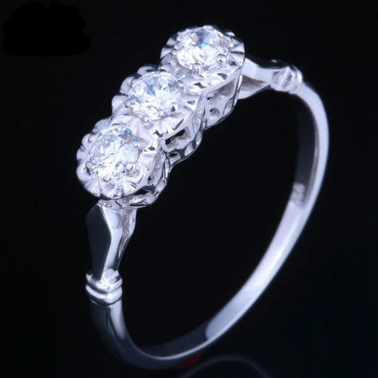 White Gold Plated 3 Stone Moissanite Ring 0.33ct Total