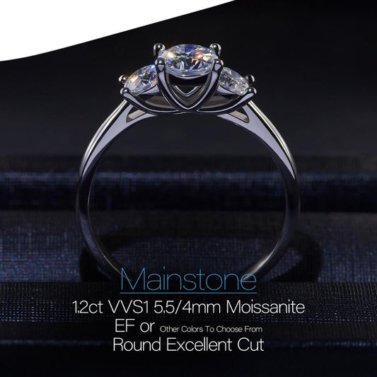 White Gold Plated 3 Stone Moissanite Ring 1.15ct (multiple colors)