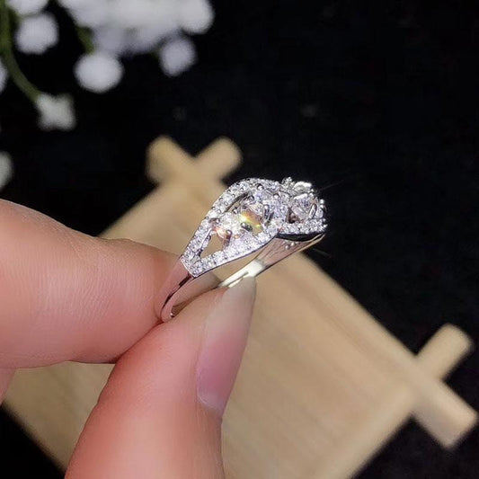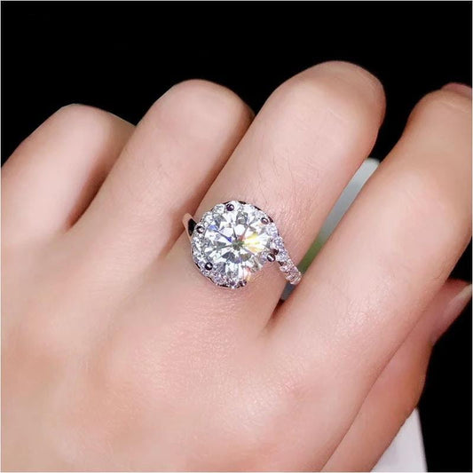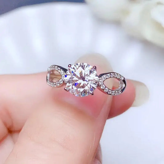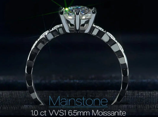 White Gold Plated Moissanite Ring 1ct Center Stone / Unique Style Engagement Rings