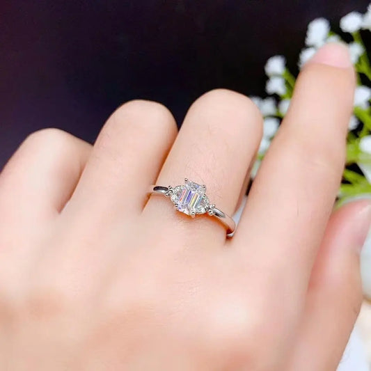 White Gold Plated Emerald Cut Moissanite Gorgeous Engagement Ring 0.5ct