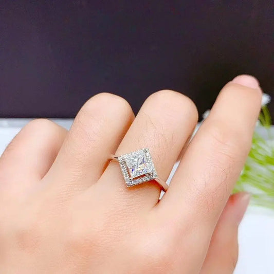 White Gold Plated Beautiful Princess Cut Engagement Ring Halo Moissanite 1ct Center Stone