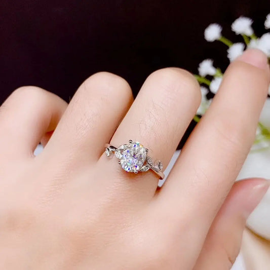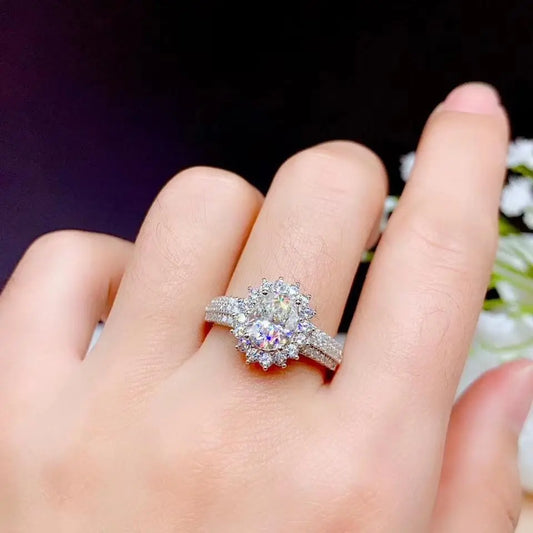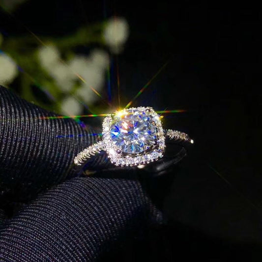 White Gold Plated Silver Halo Moissanite Trendy Engagement Ring 1ct Center Stone