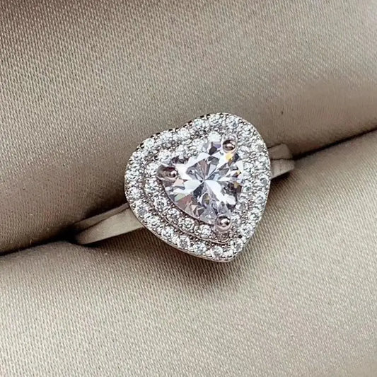 White Gold Plated Silver Heart Cut Double Halo Moissanite Ring / Heart Halo Ring 1ct