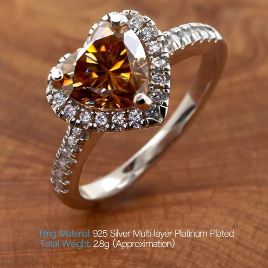 White Gold Plated Silver Heart Cut Moissanite Beautiful Unique Engagement Ring 1ct Center Stone
