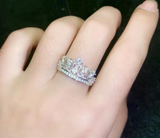 White Gold Plated Silver Moissanite Crown Ring 1ct