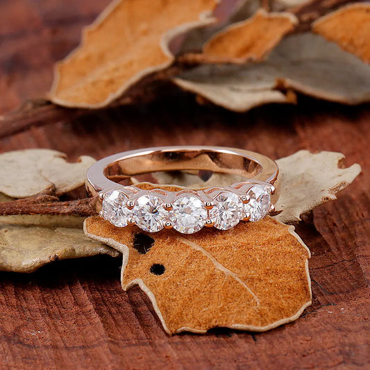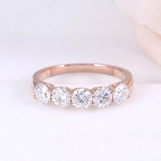 14k Rose Gold 5 Stone Moissanite Anniversary Ring 1.25ct Total | The Anniversary Band