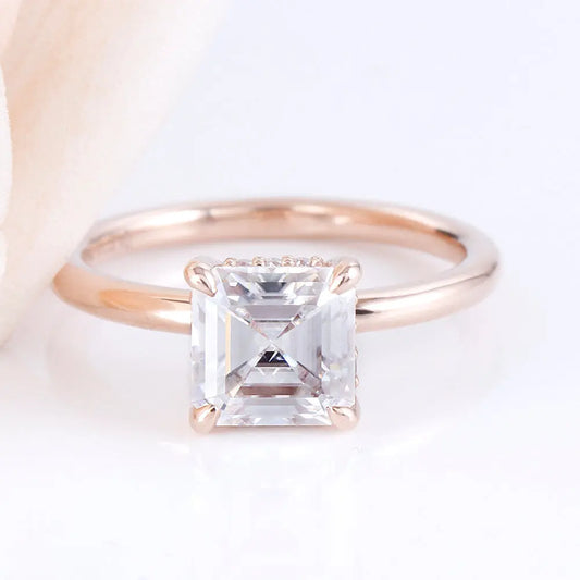 14k Rose Gold Asscher Cut Moissanite 1.5 Carat Engagement Ring Total